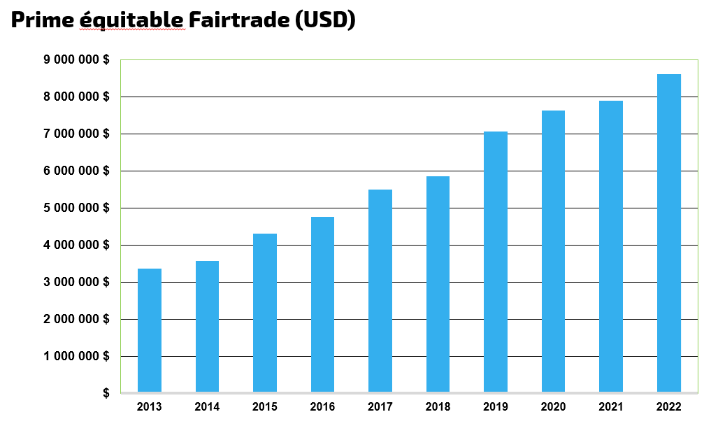 En 2022, le café Fairtrade a continué à surpasser le marché, avec une croissance en volume de +2,6 % sur un marché globalement statique. Le cacao Fairtrade a augmenté de 20 % et les bananes Fairtrade ont connu une croissance massive de 86 % en volume, car de plus en plus de détaillants nationaux et régionaux les proposent désormais.
