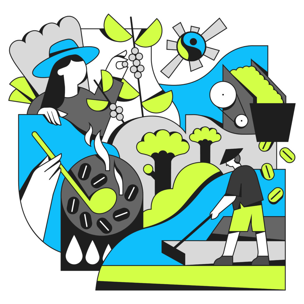 “I’ve been doing illustrations for a coffee company for a few years now. For their packaging, they asked me to draw a family of producers who they work with and sent me some photos for reference. So when I prepare my coffee in the morning, I see the bag and I sort of feel like I know the people who made it.”