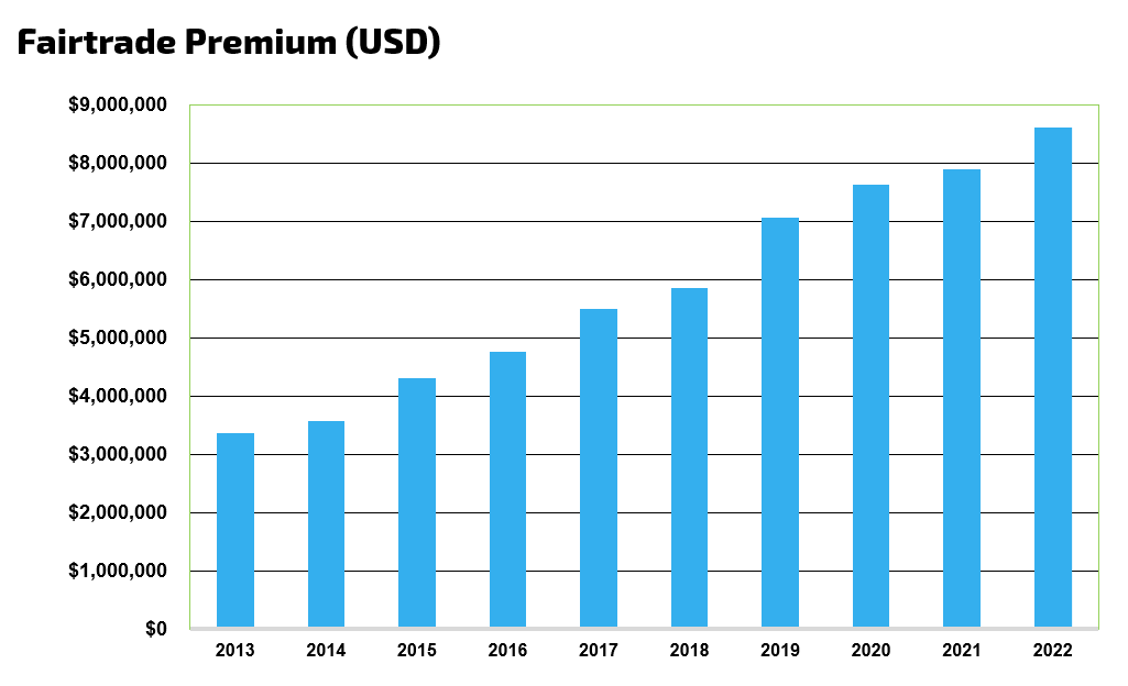 As a Fairtrade partner, your sustainability impact goes beyond making sales by addressing and taking action against the root causes of poverty with the Fairtrade Price and Premium. Your partnership contributes to equipping farmers and workers with the tools and knowledge they need to continue producing the products we love and plan for their futures.